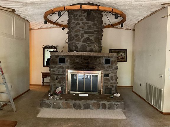 Very unique home with a heck of a shop building. Shop use to be a fiberglass repair building with a number of overhead doors, lean-to on left side and also one to the rear. Shop has over 2560 sq.ft. (a full bath & office space) and can be utilized for so many different business. The property has 14 acres with great highway frontage. There are no pics of inside of home or shop yet because there was an estate sell last weekend and owners are still cleaning, will post them as quickly as we can.