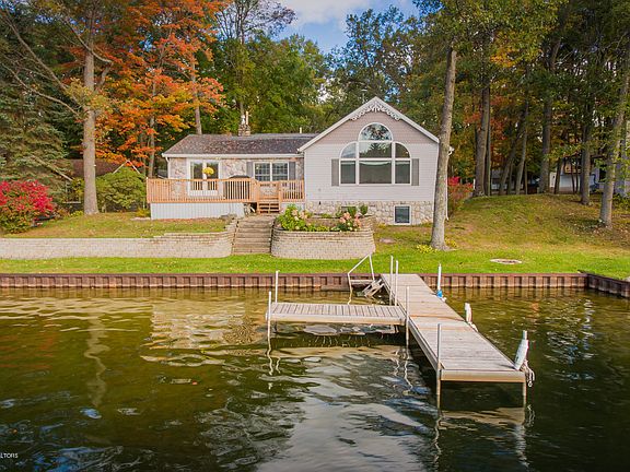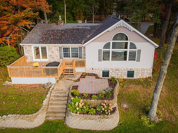 Year-round home or your northern getaway with 75 feet of water frontage on all sports Lake George! This 3 bed 2 bath home features an attached 2 car garage, great room with unobstructed views of the lake, 2 fireplaces, 2 decks, a fenced in yard, and a whole house generator offering peace of mind. The home's waterfront is beautifully landscaped with tiered garden beds, a paver patio and the sandy bottom perfect for enjoying time in the water! Dock is included. Furnishings and 2017 Manitou 22ft tri-toon are negotiable.
