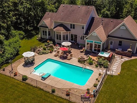 RESORT LIVING RIGHT IN YOUR OWN BACKYARD!!ONE OF THE BEST I'VE SEEN**GLORIOUS CUSTOM INGROUND POOL, EXTENSIVE CUSTOM PAVER PATIO, STONEWORK, HOT TUB, GAS FIREPIT AND THE MOST SOPHISTICATED OUTDOOR KITCHEN, GRANITE, SS DRAWERS, REFRIG AND WOOD FIRED PIZZA OVEN- ALL SURROUNDED BY 2.5 ACRES OF LUSH PRIVATE WOODED OASIS!!PICTURE PERFECT DESIGNED HOME, UPDATED BROOKHAVEN, GRANITE AND S/S KITCHEN W/ NEW ENTERTAINMENT SIZED ISLAND/BREAKFAST BAR THAT SEATS 9**OPENING TO GREAT ROOM, HANDCRAFTED BUILT INS AND GAS FIREPLACE, WALL OF WINDOWS OVERLOOKING SERENITY!!1ST FLOOR MASTER SUITE, SPA BATH AND A WOMAN'S DREAM WALKIN CLOSET W/ CUSTOM ORGANIZERS**OFFICE/1ST FL BEDROOM AND FULL BATH**UPSTAIRS 3 BEDROOMS AND 2 FULL BATHS**GLORIOUS SUNROOM SURROUNDED BY WINDOWS WITH SCREENS!!FINISHED TERRACE LEVEL WITH SUNNY BRIGHT EXPANSIVE WINDOWS!TURN KEY AND EZ TO SHOW**H-U-R-R-Y THE OFFERS WILL STACK UP