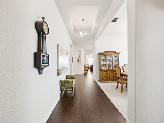 A stunning, single-story gem that checks every box and then some! From the moment you step inside, you’ll feel how beautifully this home has been cared for. The floorplan is that rare one-story layout everyone’s looking for, offering space in all the right places. The heart of the home is the gorgeous kitchen, featuring a large island, endless counter space, and a walk-in pantry that’s ready for all your favorite snacks and hosting essentials. The open layout flows perfectly into the living area with its cozy gas log fireplace and warm engineered hardwood floors. The primary suite is pure perfection — oversized with a private sitting area that could double as a nursery, reading nook, or home office. The spa-like bathroom feels like your own personal retreat, complete with an extended walk-in shower and a massive closet you’ll absolutely love. Two additional bedrooms plus a versatile dining or flex room offer plenty of options to fit your lifestyle. Step outside to your extended covered patio and enjoy a spacious backyard — perfect for relaxing evenings or weekend BBQs. You’ll also love being part of this friendly community with its pool, playground, and the added bonus of being within walking distance to the highly rated Memorial STEM Elementary. With unbeatable access to Grandscape, Shops at Legacy, and major highways, this location makes commuting and weekend fun effortless. Homes like this don’t come along often — schedule your showing today before it’s gone!