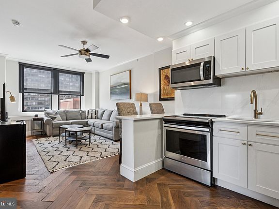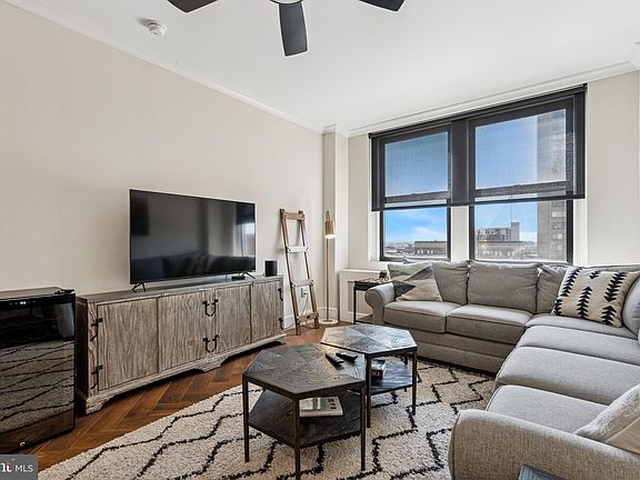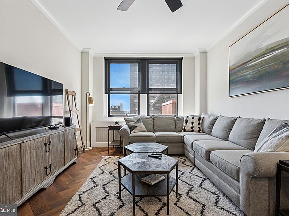 Rare opportunity to own a turnkey, luxury residence at the Arts Condominium in Center City with ALL UTILITIES INCLUDED in the monthly fee. This interior-designed 1BD CORNER UNIT was beautifully renovated in 2019 and features a contemporary white kitchen with quartz countertops, white shaker cabinetry, stainless steel appliances, and soft recessed lighting for an elegant, polished feel. No expense was spared in professionally leveling the concrete subfloor to install engineered French Oak herringbone flooring throughout, blending seamlessly with the white herringbone-tiled bath. The home is finished with rich crown molding, burnished brass hardware, custom window treatments, and sophisticated lighting fixtures, topped with panoramic southern views from every room. The Arts Condominium is a full-service building offering a 24hr concierge, fitness center, residents’ lounge, business center, laundry room and bike room. GARAGE PARKING is available directly across the street for an additional fee. Immerse yourself in the heart of Center City’s arts and cultural district, surrounded by top-rated restaurants, theaters, the Kimmel Center, and luxury high-rises, including Arthaus, the newest addition by renowned Philadelphia developer Carl Dranoff. Whether you're seeking a primary residence, a stylish pied-a-terre or a solid investment in the heart of the city, this turnkey luxury condo offers the perfect combination of comfort, convenience and location. Don't wait, call today!