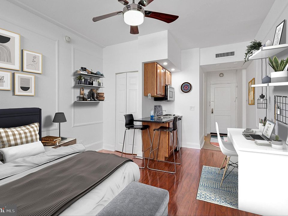 Available Early December | Leasing Special: $1,150/month for a 12-month lease or $1,095/month for an 18-month term! Welcome to 1324 Locust St #509! This is a lovely 5th floor Studio in the heart of Center City with ALL UTILITIES INCLUDED! Step inside to find hardwood laminate flooring and a ceiling fan for year-round comfort. You'll be right in the center of the action in the Arts Condominium. Just steps from Broad Street's Avenue of the Arts, offering some of the best shopping, dining, and entertainment in the city, this unit has all you need to live comfortably. There's public transportation to anywhere just outside your door, building amenities including a fitness center, laundry room, 24-hour desk attendant, hair salon and free internet in the lobby, common room with couches and meeting space, and much more right around every corner! Lease Terms: Generally, first month, last month, and one month security deposit due at, or prior to, lease signing. Other terms may be required by Landlord. $55 application fee per applicant. Strictly no pets. Water, gas, electricity, and internet are included in the monthly rental price. Tenants responsible for in-unit cable and $350 move-in fee. Landlord Requirements: Applicants to make 3x the monthly rent in verifiable net income, credit history to be considered (i.e. no active collections), no evictions within the past 4 years, and must have a verifiable rental history with on-time rental payments. Exceptions to this criteria may exist under the law and will be considered. The fee to use the Bike Storage Room is $50.00 and tenants are provided with a key to the room. There are bike racks in the room and it is totally up to the tenant whether they wish to secure their bike with a lock. The room, itself, is locked and only available to other residents with keys to the room. Residents using the Bike Room need to know that bikes can only be transported through our side entrance and then their bike must be carried through the lobby, down the steps and into the Bike Room. It is permissible to keep your bike in your condominium, as an alternative, in which case the resident will purchase a key to the freight elevator for $10.00.