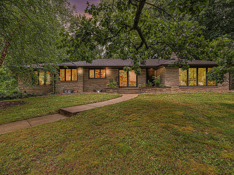 Buyer changed their mind so you now have a chance to own this Exquisite Home, situated on a hilltop in the desirable Orchard Hills neighborhood. This Mid-Century Stone Ranch features an abundance of windows that seamlessly connect indoor and outdoor spaces, allowing natural light to flood the interior. There is Bamboo-hardwood floors flowing throughout the home. This functional layout has a center foyer that flows into the living room with floor to ceiling windows and wood burning marble fireplace. Dining room flows into the kitchen that has been updated with granite countertop, stainless appliances and comfortable breakfast nook. Family room is a restful room with plenty of windows overlooking the .85 acres, built-in cabinetry and access to the patio. Main floor bdr has private sliders to the patio and full ensuite. Lower level features wood burning fireplace, recreation room/office space and plenty of storage space. The construction of this home is unmatched. Seller's have lovingly cared for this home which is evident in the upgrades such as: New Roof (2020), New A/C (2021), New Hot Water Heater (2022), Water Softener (2022)