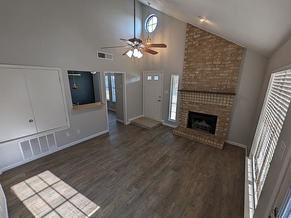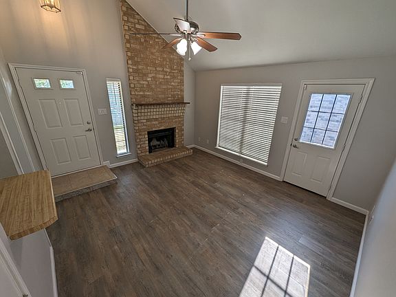 front porch, deck, car port, fenced yard, air conditioning, fireplace, dishwasher, walk-in closet, pets are welcome with pet fee, smoking not allowed, refrigerator.