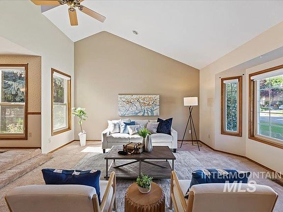 This beautifully maintained home is located in one of Boise's hidden gem locations on a sought-after part of the Central Rim neighborhood. With no HOA fees, a three-car garage, and RV parking, convenience meets practicality. Situated on a generous lot, the property features a large covered back porch, beautiful mature landscaping, and two storage sheds. Inside, you'll find the home feels spacious, with separate living and family rooms adorned with a gas fireplace and a built-in wet bar, ideal for entertaining. The kitchen has been tastefully updated with granite countertops, a gas cooktop, and an inviting eat-in dining nook. Vaulted ceilings and skylights illuminate the home, enhancing its ambiance. The primary suite offers a walk-in closet, a soaker tub, and dual vanities. Residents will appreciate the neighborhood's direct access to the greenbelt, providing easy access downtown and to Boise's renowned parks.