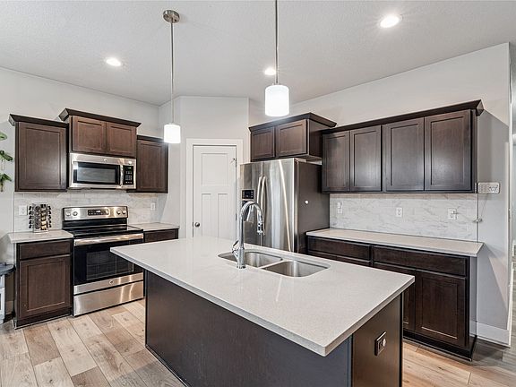 Welcome home to this beautifully maintained Tanzanite built split ranch offering almost 1500 sq ft of finished space, three bedrooms, two bathrooms, and thoughtful upgrades throughout. Step inside to an inviting open layout featuring a spacious great room with a stack stone gas fireplace and nine foot ceilings.The kitchen is a standout with granite countertops, a large island, a huge corner pantry, dark stained maple cabinets, and stainless steel appliances. The mudroom with built-in lockers keeps daily life running smoothly.The primary suite includes a full bath with tile and comfort height sinks. The lower level offers incredible potential with two egress windows and plumbing stubbed for a future three quarter bath, giving you the opportunity to finish the space exactly how you want.Enjoy the private fenced backyard from the new composite deck with pergola, perfect for relaxing or entertaining. A radon system is already installed for peace of mind.The neighborhood is quiet and friendly with walking trails and three ponds for fishing, plus a strong sense of community. Exceptional SE Polk schools.This home truly blends comfort, quality, and convenience. Come see it today!
