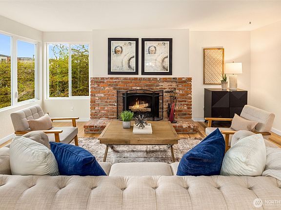 Conveniently proximate to Ballard, Fremont, S. Lake Union, Downtown, and everything the city has to offer, this pristine sanctuary in the city has it all! Open-concept living space complemented by abundant natural light, and a variety of updates and upgrades. Granite counters, stainless appliances, shaker cabinets, custom tile backsplash. Genuine (not mfd.) hardwood floors, fresh interior paint, & new water heater. Both extraordinarily spacious bedrooms feature en-suite bathrooms. Primary boasts an enormous walk-in closet. Newer W/D in unit. Well-managed, pet-friendly HOA recently completed new building revamp: roof, windows, siding, decks, ext. lighting & paint, int. paint & carpets. Dedicated, secured parking & storage. Top-rated schools!