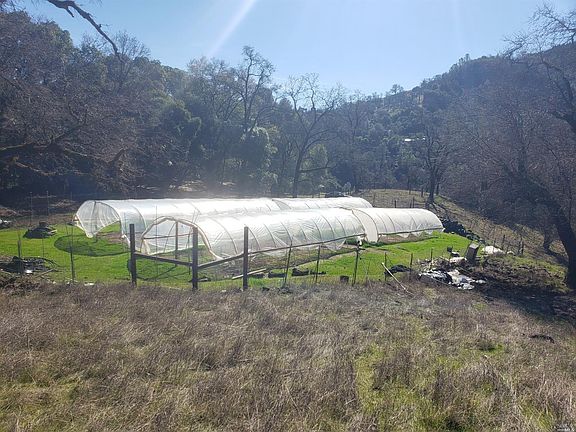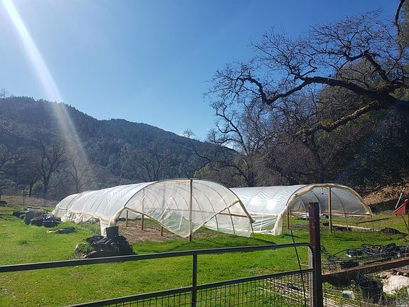 77 gentle rolling acre farm perched above the Eel River. Rustic 3 bedroom, 2 bath Mountain Retreat home with views. 14 greenhouses, two-story Workshop. County and State Cannabis Permits. Private River Beach and swimming hole.