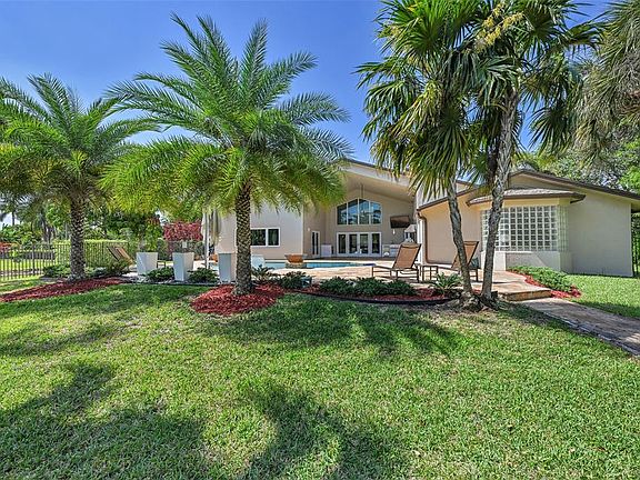 Discover refined living in the highly desirable Whispering pines community- where every home is uniquely crafted and surrounded by lush landscapes, peaceful water views and the soothing sounds of nature. This 5-bed, 3.5-bathroom estate is set on a builder's acre and offers the perfect balance of elegance and comfort. Designed with soaring 31-foot ceilings, the home features marble flooring in common areas, hardwood floors in bedrooms, and built in closets throughout. The oversized primary bedroom overlooks the pool. At the heart of the home is a chef-inspired kitchen outfitted with Thermador appliances and built in Miele coffee system. Step outside to your resort style backyard with heated pool, stunning water views, and a brand new in ground basketball hoop. This rare find won't last.