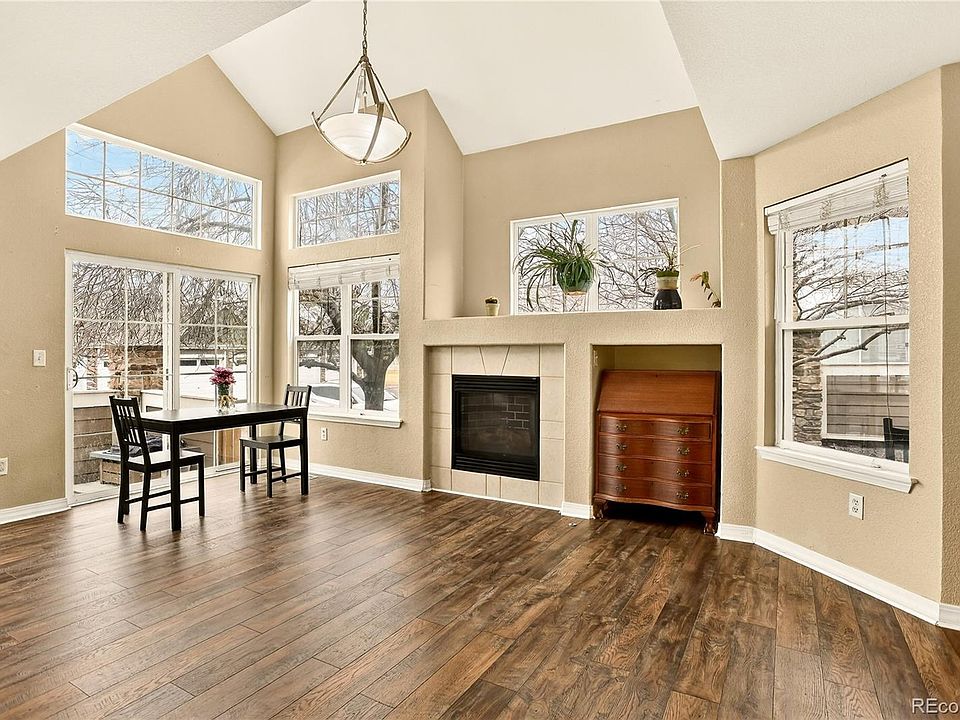 Welcome to this charming 2-bedroom, 1.5-bath townhome in the highly sought-after Old Farm Townhomes community. This desirable end unit is filled with natural light and features beautiful new vinyl flooring that adds warmth and style throughout. The spacious living room is ideal for relaxing or entertaining, with large windows that brighten the space and a cozy gas fireplace for added comfort.