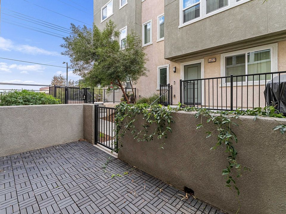 In the heart of Sylmar, where all entertainment attractions such as shops, restaurants and schools are minutes away, sits a 1,780 sqft, 4-bedroom, 3.5-bathroom townhome, move in ready for the next lucky buyer to set their roots and make their mark. A paved walkway leads to the front patio of the home, large enough to set up lounging furniture and enjoy a bit of fresh air on warm summer day. Upon entering, you are greeted to a multi-level home with tile and carpet flooring throughout. A bedroom on the lower level that includes an en suite bathroom and can be used as an office, gym, or any sort of bonus room. Stairs that lead to the mid-level of the home and into an open floor layout. The kitchen, which includes a center island and is used as a breakfast bar, is beautifully finished and features mosaic like tile backsplash that complements well with the earthy tones of the cabinetry and countertops. Kitchen is conveniently located in between the living and family room, both of which have carpet flooring throughout and both of which have easy access, to and from. Another set of stairs that ascends to the third level and to the upstairs hallway, connecting a bathroom shared by three bedrooms, all of which have carpet flooring and one of which is the primary with an en suit bathroom. Hallway also includes tons of cabinetry which is conveniently used for linen storage. Finally, home includes an individual laundry room with a washer/dryer hookup and direct access to an attached 2 car garage.
