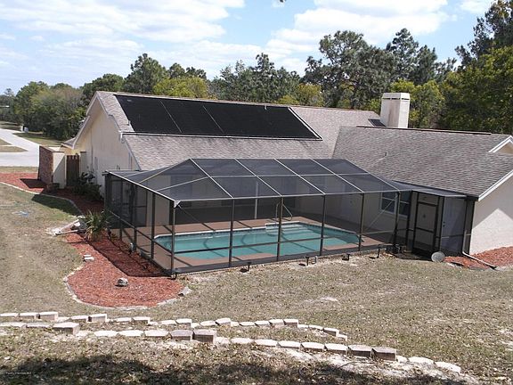Impeccable 3/2/2 on cul-de-sac. Custom Kitchen Maple wood cabinets w/pull out drawers. Lots of Cabinets and Corian Countertops.Large Tiled Breakfast Area and Breakfast Bar,Formal L/R & Formal Dining Rm/wood floors, Huge Tiled Family Room with beautiful wood burning fireplace.Surround Sound & Intercom. King-Sized Master Bd/Master Bath Renovated with Glass Block Snail Shower and Double Vanity Sinks,Queen-Size Guest Bds. All bedrooms have walk-in closets. Glass Block Wet Bar,Cathedral Ceilings,New Carpeting in Bds,Large Diamond Brite Solar Heated Pool,Outside Shower,Summer Kitchen,Newer Timberline Roof, A/C,Tankless Hot Water Tank,New Windows,Sprinklers,Gutters & Downspouts,Oversized Two Car Screened Garage w/Storage,courtyard,A/C Storage Rm.Seller will provide 1 Year Home Waranty Plan.