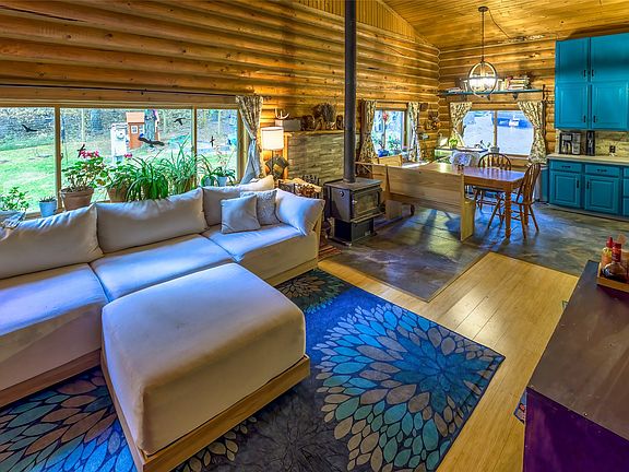 Motivated sellers are looking at all offers. Welcome to 13245 Balsam Root Road, a charming log home nestled on a private road. This cozy house offers a unique blend of rustic charm and modern convenience only 5 minutes to Lolo and 20 to Missoula. With 3 bedrooms, 2 bathrooms, and its flexible layout, this house can easily be reconfigured into a 2-bedroom home with a lower-level living area. The main level bedroom provides easy accessibility, while the additional loft space offers versatility and can be used as an office or an extra sleeping area. Large windows overlook the peaceful yard which has apple and cherry trees along with raspberries, strawberries, nanking cherry, asparagus and blueberries! There is a large deck and fenced yard for the dogs, raised garden beds, a small greenhouse and chicken coop. This home is close to many outdoor activities and within walking access to public land. This home is located on a PRIVATE ROAD- no drive by's please!