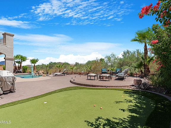 Step outside to a backyard built for fun and relaxation, featuring a sparkling pool with waterfall, resurfaced pool deck, gas fire pit, private courtyard, and your very own putting green.