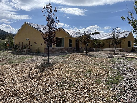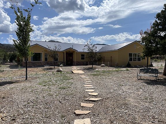 Mountain biking, hiking, horse trails on remaining 14 acres connecting to trails on BLM. Property is under contract with a 72 hr time clause. Large barn, enclosed with slide doors on either end, power to barn. Smaller outbuilding with power and water insulated, used for feed room, connected to two small corrals at her fenced and gated. Small livestock barn and hay storage with large overhang for weather protection.