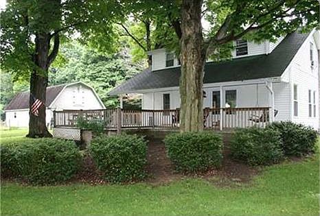 GREAT FOR HORSE LOVERS! 3 BOX STALLS IN 50x24 BARN WITH WATER AND ELECTRIC. 2-CAR GARAGE AS PART OF THE BARN PLUS FINISHED LOFT. HOUSE HAS NEWER VINYL WINDOWS, AND VINYL SIDING ON HOUSE AND BARN. THERE ARE 2 FURNACES IN THE HOUSE; ONE GAS AND ONE WOOD. HARDWOOD FLOORS ARE ORIGINAL. 18x16 OUTBUILDING AND COVERED 28X8 FRONT PORCH.