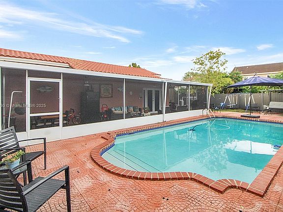 The essentials for Miami Living can be found here! Impact windows protect the home from the outside elements. Newer roof less than 5 years old, helps ensure your peace of mind for decades. Recently installed ac unit, helps keep you nice and cool during those grueling summer months. And to top it off, featured is an oversized pool in your backyard for the family to enjoy. The backyard offers plenty of additional space for entertaining besides the grand pool. The two car garage has been converted to an oversized flex space that can be used for a child's playroom, extra bedroom, or office space. The kitchen finishes are extra tall solid wood cabinets which can be refinished to a lighter modern look and a granite countertop. The hard work has been done, just missing your personal touch.
