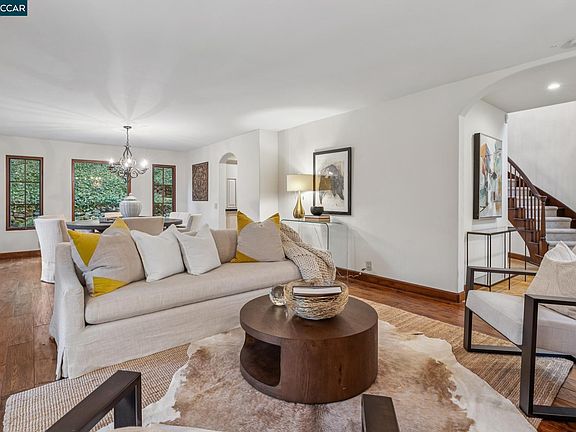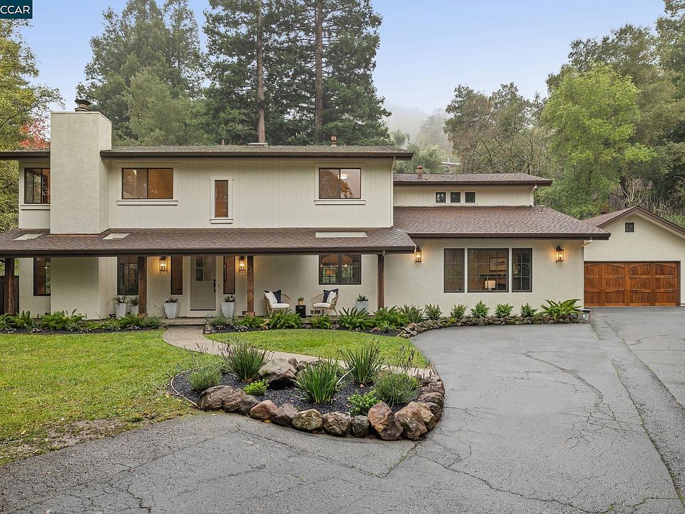 Located in the desirable Springhill neighborhood, this private Tuscan-style remodeled beauty is set on a .95-acre flag lot, offering exceptional privacy and usable outdoor space. The home features open living areas with high ceilings, hand-troweled walls, arched doorways, Sierra Pacific wood divided-light windows, and a blend of natural stone and distressed hickory hardwood flooring. A formal living room with fireplace and adjoining dining room sit just off the entry, surrounded by windows. The spacious eat-in kitchen includes stone countertops, custom wood cabinetry, 10-foot island with copper prep sink, walk-in pantry, & dedicated bar area. Appliances include a 6-burner Dacor range, sep. Dacor wall oven & microwave, Shaw farmhouse sink, & GE Monogram side-by-side refrigerator. The kitchen opens to a large great room with custom media center & stone gas fireplace. An adjacent office or playroom provides flexible use. Upstairs are 4 secondary bedrooms & a generous primary suite w/vaulted wood-beamed ceilings. Outdoor oasis includes a 2.5-car garage w/custom mahogany carriage door, expansive front lawn, backyard patio, meandering side paths, & a flat, expansive outdoor area w/seating and arbor (room for ADU, pool, & much more!)!