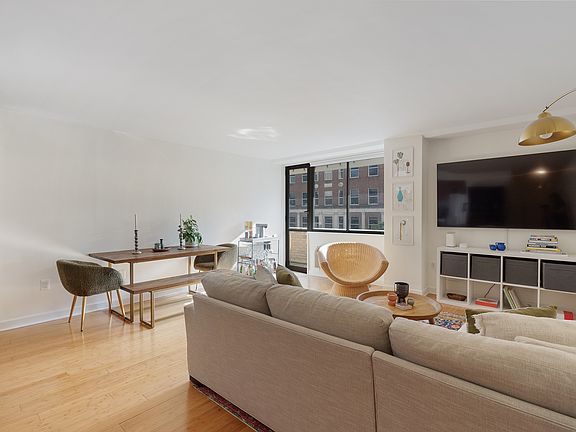 Just two blocks from the Metro, this spacious 1-bedroom, 1-bath condo offers approximately 719 square feet of open, light-filled living space. Featuring gleaming hardwood floors throughout, the home includes an updated kitchen and bathroom, generous closet space, and a large private balcony with sweeping views of 18th Street. The balcony floor was upgraded with stylish ceramic tile in 2023. The kitchen is beautifully appointed with stainless steel appliances (all new in 2023), granite countertops, and a convenient breakfast bar. The bright and generously sized bedroom includes a walk-in closet and pocket doors that lead to a sleek, modern bathroom. The bath showcases double sinks, marble flooring, a linen closet, a frameless glass shower, and designer tile work. An additional large closet in the front hall provides excellent storage. Residents enjoy access to a rooftop swimming pool and deck with panoramic city views and seasonal plantings. With a Walk Score of 99, Dupont Circle is one of DC's most vibrant neighborhoods, known for its historic charm, cultural venues, top-rated restaurants, and boutique shopping. Parking is available in the building for a fee.