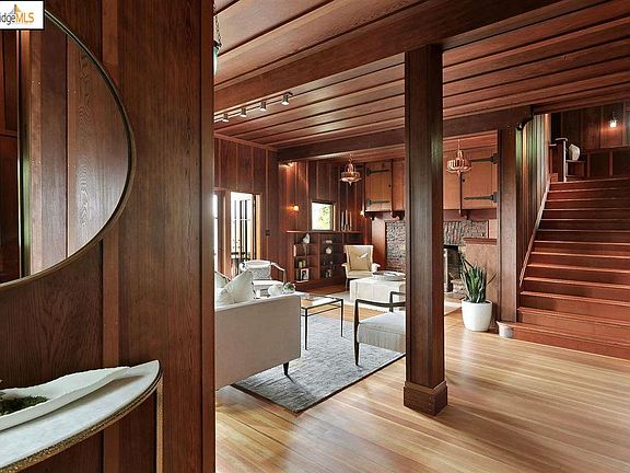 Located in North Berkeley among architecturally significant homes and prominently sited at 1325 Arch Street, this 5-BD Swiss Chalet-style house was designed by Bernard Maybeck in 1906, a true architectural jewel.Shielded from the street, a wisteria-covered arbor greets you as you enter.Filled with the brilliance of its heritage and the beauty of natural materials,it has been restored with exceptional attention to its lustrous originality while blending modern features and amenities. Spaces for gathering and other rooms for private contemplation blend throughout. Redwood interiors, wraparound balconies, private flourishing garden,& magnificent views to SF, Golden and Bay Bridges & Mt.Tam.The feeling of union with the environment can be experienced throughout. The suppleness of the wood, anchored with copper nails, can best be appreciated as the sun flows in through the many windows and doors.The flourishing garden offers a private portal to flora & fauna of surrounding lush landscape