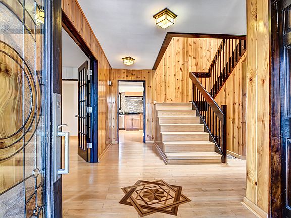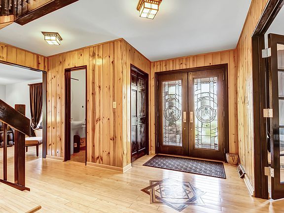 Carefully crafted by its original owner-builder-architect and inspired by modernist design, this home is a true one-of-a-kind work of art. Greeted by a welcoming courtyard that enhances its curb appeal, you'll drive up the side-apron driveway and approach the brick paver front porch. Step through the elegant double front doors into the voluminous 4,481 square-foot interior. Features include a grand foyer with a wood-wrapped staircase, infusing the space with organic elegance and comfort. Bamboo floors continue throughout the large living room with a fireplace and abundant windows, as well as the formal dining room with French doors. The newer eat-in kitchen harmonizes beautifully with the home's ambiance, showcasing wooden cabinetry, granite countertops, and stainless steel appliances. A family room (or office/den/study) provides access to the semi-private backyard, which features a brick paver patio. Upstairs, you'll find five spacious bedrooms, all with vaulted ceilings and large windows, including the massive master bedroom with a private sitting room/nursery and an ensuite bathroom. The upstairs is also adorned with bamboo and wood flooring, adding to the home's warm and organic feel. Original floor-to-ceiling mosaic tiles grace all the bathrooms, adding timeless beauty. The finished basement (not included in the 4,481 square feet of above-ground space) offers additional room perfect for indoor entertaining, a home office, gym, or hobby room. The furnace and central air are 4 years old, and the roof and gutters were replaced 6 years ago. Don't settle for a clone-come experience this genuine original!