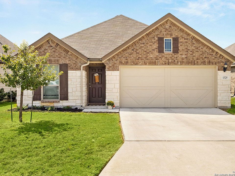 Welcome to 1325 Cool River... a single-story home designed with comfort and flexibility in mind. A spacious kitchen sits at the heart of the home, opening to bright living and dining spaces that make everyday living feel effortless. The layout includes a private primary suite along with well-placed secondary bedrooms and a fourth bedroom currently used as a playroom-which could also work well as a home office, library, or extra lounge space. Step outside to a covered patio and a backyard with open lawn space and enough room to spread out. Just minutes from Gruene and with easy access to shopping, dining, and major highways, this location makes everyday living simple. Come see how easily this home could fit the way you live.