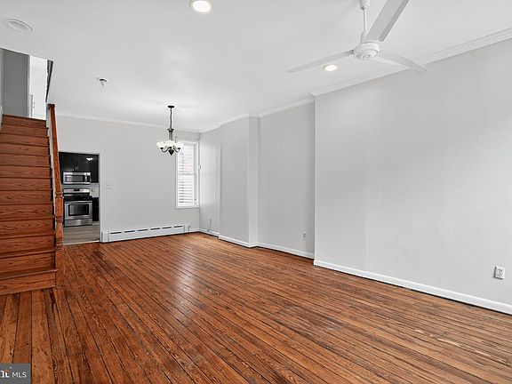 Well located Rowhouse, 1481 square feet, in Fishtown. Enter into a generous sized open floor plan; Living /Dining room combination with hardwood floors, ceiling fan and recessed lighting. Fully equipped Kitchen with upgraded granite countertops, stainless steel appliances and engineered wood flooring. Rear Half Bath New Washer/ Dryer and access to the 20 plus foot yard. 2nd floor: Rear Bath, Hall Bedroom/Study with French Doors to the Front Bedroom both with painted wood floors. 3rd Floor Two Bedrooms with painted wood floors. Basement with mechanicals and lots of room for storage. Heat is hot water baseboard with a high velocity central air system.