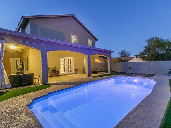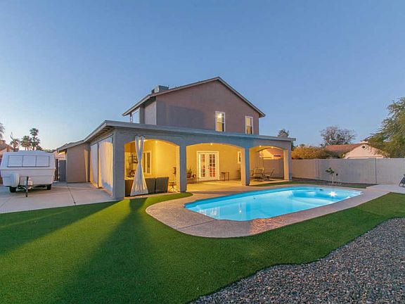 Highly upgraded and well-cared-for home on a corner lot in a great north Phoenix location with easy access to Loop 101 & Paradise Valley schools. This home offers 3 bedrooms & 2.5 baths in 1848 SqFt. with a large great room & spacious dining area adjacent to the kitchen. The kitchen has refinished cabinetry, granite counters, black appliances, breakfast bar & built-in desk. French doors lead out to a fabulous backyard! You'll love the extended wrap-around covered patio & new saltwater low-maintenance fiberglass pool w/color adjustable LED underwater light. The backyard also has artificial turf, additional patio area & large side yard w/12-ft RV gate & concrete pad. Bedrooms are upstairs & all baths have been remodeled. The master has vaulted ceilings, walk-in closet and private bath w/dual