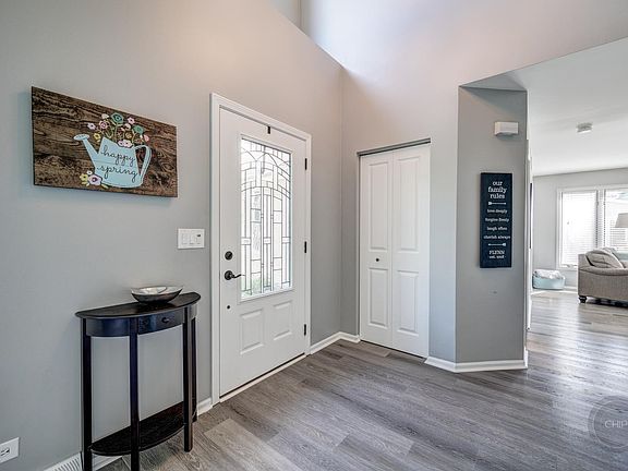 Welcome to your new home located on an interior street in the desired Fields of Bradford neighborhood. Fantastic spacious floorplan which has been recently refreshed throughout with updated paint colors, and wood-look vinyl flooring on the main floors. Two-story foyer adjoins the Vaulted Living Room which is adjacent to the formal Dining Room. Kitchen includes all stainless steel appliances, white cabinets and solid surface counters. Kitchen and Eating area are open to the Family Room with gas start fireplace. Sliding glass door off eating area leads to paver stone patio, firepit area and fenced yard. Updated powder room. Main floor laundry room includes washer and dryer, overhead cabinets and built-in coat area. Master suite has luxury bath including separate tub/shower, dual sinks, and oversized walk-in closet. Spacious secondary bedrooms and hall bath. Finished lower level with newer carpet and plenty of storage. Nearby Plainfield schools. Easy access to shopping, restaurants and expressway. Great house for the money. You won't be disappointed.