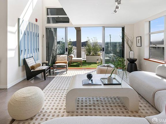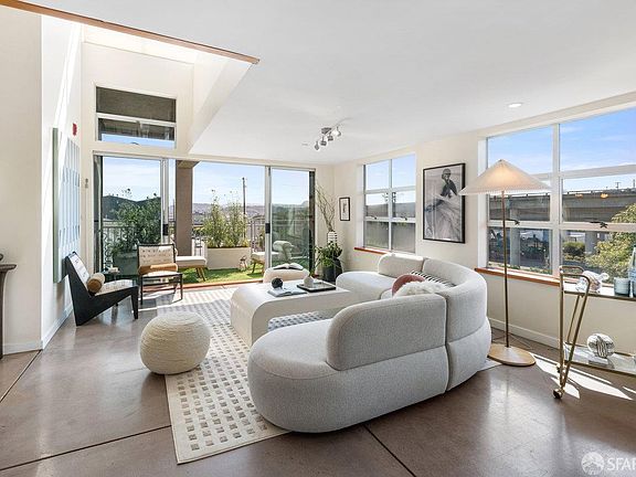 This one-of-a-kindtop-floor penthouse corner loft at a landmark Dogpatch building captures the essence of industrial chic living w/polished concrete, steel details, and large windows that flood the space w/natural light. Two oversized private decks extend the living area outdoors, framing sweeping city and western views. The open floor plan is perfect for entertaining, easily accommodating larger gatherings, while the upstairs bedroom also offers skyline vistas, including the nightly changing shows of SalesForce Tower. In-unit laundry and garage parking add convenience.The building is thoughtfully designed by David Baker Architects. The location places you steps from all of the "hidden gems" of Dogpatch: Philz Coffee, Neighbor Bakehouse, Piccino, Third Rail, and The Ramp, plus art and culture at Minnesota Street Project and the Museum of Craft & Design. Chase Center, RH, UCSF, Souvla, Dogpatch Boulders, Progress Park, Crane Cove beach and Potrero neighborhood are all just blocks away. At the heart of San Francisco's AI and tech boom, w/OpenAI, Coinbase, Visa and other hubs nearby, this condo combines beautiful architecture, quiet comfort, and long-term upside in the city's most dynamic neighborhoods. Commute is seamless w/the T line on 3rd, Caltrain, and quick 280/101 access.