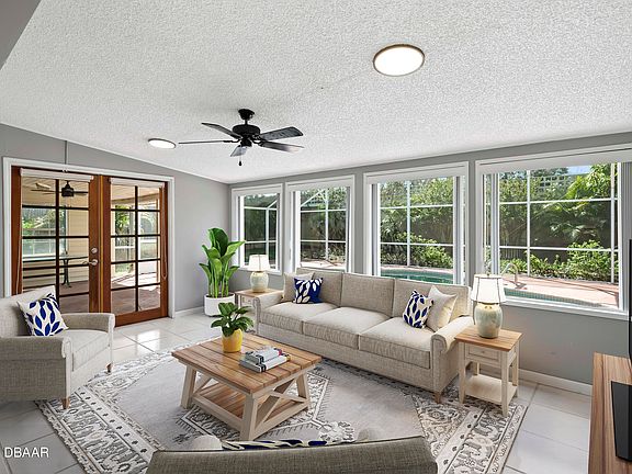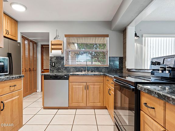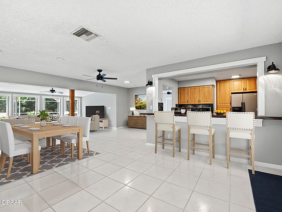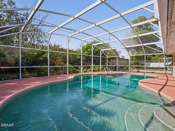 Discover your perfect oasis in Daytona Beach! This stunning three-bedroom, two-bathroom pool home is ideally situated near shopping, restaurants, and all the excitement Daytona has to offer, including its world-famous beaches. Sitting high and dry outside of a flood zone you will be provided with years of worry free living. Upon entering you will be delighted by the spacious open layout which provides a light and bright atmosphere and an abundance of windows allowing for natural light throughout. The home features a desirable split bedroom floor plan, providing both privacy and comfort. The updated kitchen boasts a large pantry, ample cabinet space, and a unique live edge eat-at bar, perfect for casual dining and entertaining. The master bedroom offers a peaceful retreat with an en-suite bathroom featuring a convenient bath/shower combination. The true star of this home is the large private screened in pool, perfect for family gatherings or relaxing on a hot Florida da With additional upgrades including a new roof installed in 2023, an electric panel in 2021, a water heater from 2017, and a reliable AC unit from 2016, this home is both stylish and functional. Enjoy sunny days by the pool and embrace the vibrant Daytona lifestyle in this beautifully updated residence.