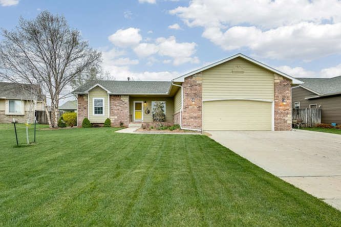 Absolutely darling home in the Maize School District. This home's curb appeal is a 10+. Meticulously maintained, this home is just waiting for a new family to move in! The focal point of the living room is a beautiful wood burning fireplace with a gas starter. Perfect for those chilly Kansas evenings! The dining area is just off the kitchen and has doors opening out onto a large patio. Ideal for family cookouts and entertaining. The kitchen has brand new vinyl flooring, a breakfast bar, and all appliances remain with the property. This is a split bedroom floor plan. The master bed and bath suite features a large walk-in closet, whirlpool tub, separate shower and double vanities. There are two guest bedrooms and a 2nd full bath on the opposite side of the living room. The lower level is where you will find a large family/rec room. No shortage of room for large furniture, big screen TVs, space for pool or ping pong table, etc. There is a fourth bedroom and third full bath in the lower level. The backyard is fully fenced, there is a sprinkler system, irrigation well and a storage shed that is practically brand new! The homeowners have done a beautiful job of landscaping and have planted quite a few trees. You will also notice that an additional concrete drive/pad has been poured to the side of the two car garage for additional parking. At this very affordable price, this home will not be on the market long. Don't miss your opportunity - call and schedule a showing today. THE BLUE CURTAINS IN THE LIVING ROOM AND DINING ROOM DO NOT STAY WITH THE HOME. SELLERS WILL LEAVE THE RODS. ALL OTHER WINDOW TREATMENTS TO REMAIN. POOL TABLE DOES NOT REMAIN WITH THE PROPERTY.
