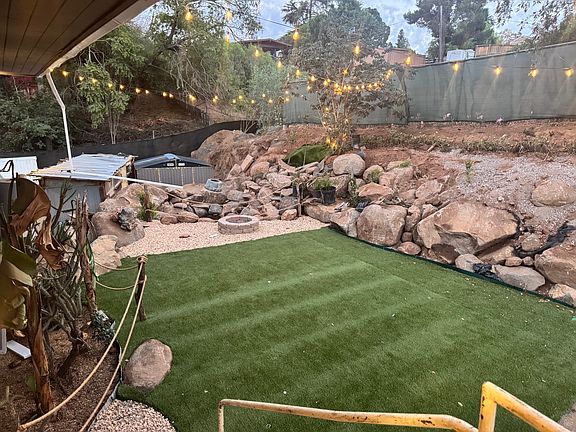 Remodeled and new 4 bedroom 2 bathroom house with a backyard and a fireplace along with a natural water fall. The master bedroom's bathroom contains a jacuzzi outlooking an included patio with a breath taking view of the city of El Cajon.