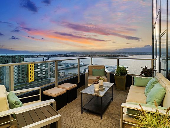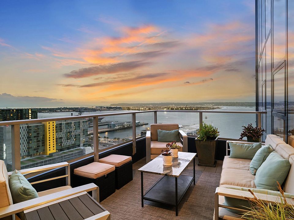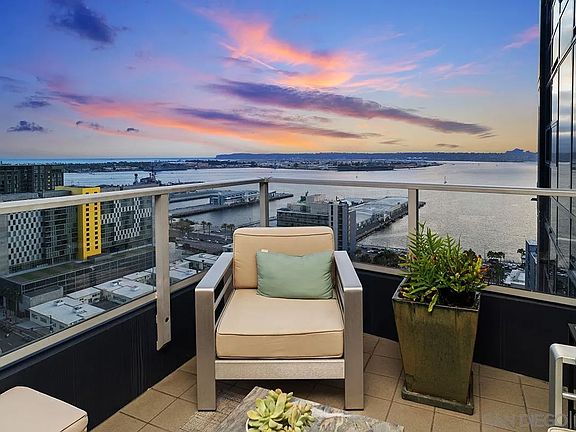Experience the epitome of contemporary elegant waterfront living in this stunning, south-facing Bayside residence! This curated remodel offers a unique blend of style and versatility, perfect for the discerning buyer. The second bedroom wall has been opened-up and replaced with moveable glass panels, allowing for adaptable living spaces and ensuring you can fully appreciate the breathtaking bay views. Custom lighting fixtures, engineered wood floors, and a generous south-facing balcony provide the perfect backdrop to take in the mesmerizing sunset skies over San Diego Bay. The gourmet kitchen is a chef's dream, featuring high-end stainless Viking and Miele appliances, Snaidero cabinetry, Brizo touch sensitive faucet, honed marble countertops and an extended quartz center island, complete with a warming drawer! The spacious primary bedroom is bathed in natural light from a bank of windows and boasts three double closets, ensuite bathroom with a step-in, oversized shower with modern tile surround, and a dual vanity. The brilliantly lit flex space/2nd bedroom, enhanced by the moveable glass panels, can effortlessly serve as a home office or additional entertainment area. With a laundry room, side-by-side parking spaces with EV charger, and access to Bayside’s premier resident amenities, this residence offers an elevated metropolitan lifestyle like no other. Widely regarded as one of the top buildings in all of San Diego, Bayside enjoys some of the most luxurious amenities Downtown. 24-hour security, resort-style pool and spa, outdoor kitchen with BBQs, fully-equipped exercise room, sauna and steam rooms, theatre, resident lounge with billiards & full kitchen, conference room, and a unique wine lounge including an oversized wine-chiller for a unique entertainment venue. All this in addition to the coveted lifestyle amenities coastal metropolitan living offers with the Embarcadero, Waterfront Park, and Little Italy all merely steps from your door! Farmers Market and numerous bars and restaurants all nearby! PLUS: Some of the most reasonable HOA dues for a premier tower in all of Downtown San Diego. Builder brochure stated 1460sqft, assessor’s record states 1286sqft.