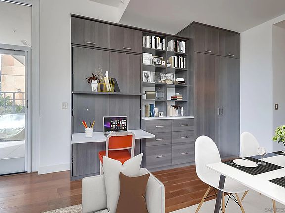 Luxe Lifestyle and Dog-Owner Dream Condo! Seller Motivated — Big Price Drop! Live in style at Bayside, Downtown San Diego’s premier high-rise. This 1BD/2BA boasts soaring 11’ ceilings, private patio, and rare street-side entry for a single-family feel. Viking kitchen, Snaidero cabinetry, solar shades, $40K in California Closets. Resort amenities: pool, spa, gym, wine room, theater, concierge. Walk a few steps away to Waterfront Park, for your dogs and/or children's joy and for practicing yoga in the park. Ideal for eBikers, runners and for easy access for the Little Italy Farmer's Market without using elevators and the main condo lobby. Sellers want it sold this month! The ultimate in convenience and luxury. Bayside is one of the most exclusive high rise towers downtown. This RESIDENCE IS A GREAT DOG OWNER'S DREAM OR THE PERFECT SECOND HOME! Just steps from Waterfront Park and no need to get on an elevator or enter a hallway to take your best friend out for a walk and get deliveries right to your private entrance, a huge living room with soaring 11 ft. ceilings, spacious bedroom and 2 full bathrooms with penthouse level finishes throughout and new AC (2023). $40,000+ in California Closet built-ins, including Murphy bed, laundry pull out w/built-in ironing board, pantry & all your storage needs. Corner location south/west facing windows! Viking and Miele appliances, Snaidero Italian cabinetry, workstation sink, water filtration system in the chef’s kitchen. Enjoy resort style living with Bayside’s brand new million dollar remodeled lobby, full time concierge, sparkling pool, hot tub, steam room, sauna, gym, outdoor kitchen, theater room, library, wine tasting room with wine refrigerator and community room with full kitchen and pool table for all your entertaining needs.