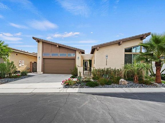 Welcome to Desert Luxury Living at Escena. Discover this highly sought after single level, 3 bedroom, 3 bathroom golf course home in the prestigious Vermillion enclave of the gated Escena community. Designed with modern style and effortless comfort, this residence combines an open floor plan, soaring ceilings, and walls of glass to create a light-filled retreat with seamless indoor & outdoor living. The chef's kitchen is perfect for entertaining with a large island and breakfast bar, sleek stainless appliances, abundant cabinetry, and direct access to a private enclosed side patio. The spacious living and dining area features 9 foot ceilings, recessed lighting, a cozy fireplace, and dramatic sliding glass doors that open to an expansive covered patio with breathtaking views of the Escena Golf Course fairways and the majestic San Jacinto Mountains.The primary suite offers a true escape with vaulted ceilings, recessed lighting, a large picture window framing mountain views, and a spa inspired bath with dual vanities. Guest bedrooms are generously sized with high ceilings, perfect for family and friends.Step outside to your resort style backyard with a sparkling pool, spa, and firepit, ideal for both relaxation and entertaining. Additional highlights include tile floors, central heating & AC, 30 solar panels, a laundry room with utility sink and cabinetry, and a welcoming courtyard entry.Perfectly located near shopping, dining, the airport, and downtown, this home has been lovingly maintained by its original owner and shows true pride of ownership.Experience the best of desert living in Escena where modern luxury meets breathtaking views.