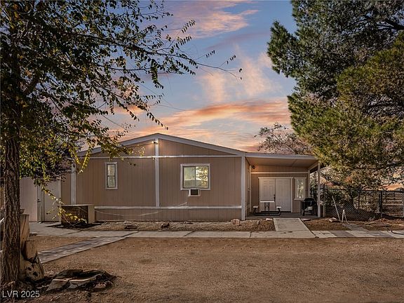 Spacious country property located right along the historic Von Schmidt Survey Line that defines part of the California–Nevada border. This 2,436 sq. ft. single-story manufactured home on 7 acres offers wide-open views, privacy, and room to live the rural lifestyle. Inside features a large family room with fireplace, a separate living area, and a generous kitchen with plenty of workspace. 3 bedrooms plus an additional flex/den room provides options for office, crafts, or guest space. Property is served by private well and septic. Outdoors you’ll find multiple fenced areas, covered patio, dog run, shed, and a detached 2-car garage/workshop. Plenty of level ground for animals, vehicles, or future structures. Located in Sandy Valley with easy access to trails, open desert, and community amenities. A rare chance to own property situated at the true state-line with room to breathe and make it your own.