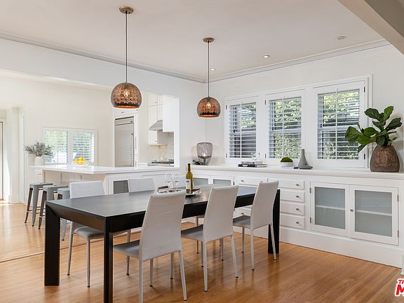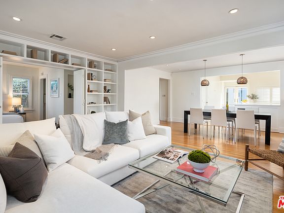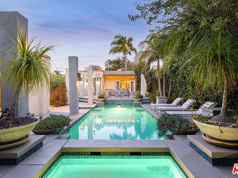 Peaceful oasis situated on a beautiful tree-lined street; a delightful blend of beauty, function and style. Beyond the lovely Spanish revival facade you are greeted by an open & airy, light-filled 2-bedroom main house + detached guest house/bedroom 3. The spacious living room with fireplace, dining area, and gourmet chef's kitchen all blend seamlessly for enjoyable open-concept living. The master bedroom is a calming getaway with French doors opening to the rear patio. A dramatic wall of built-in shelves surround the double-width doorway to the second bedroom. The sprawling, well-hedged and private yard is beyond impressive and on par with $5,000,000 estates; a lush paradise with a resort caliber salt water pool, hot tub, expansive patio areas, beautiful gardens, and built-in BBQ. The detached guest house/bedroom 3 includes three sets of French doors which open to the garden area & pool, architectural wood-beamed ceiling, wet-bar, and bathroom with shower. Additional features of this spectacular property include secure driveway access with electronic gate, abundant storage, outdoor storage sheds, outdoor pool shower, electric car charger, heat and A/C, and solar panels.