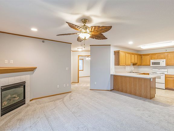 This well-maintained, move-in ready quiet end unit condo offers the ease of ground-floor living with a secure entry. It features brand new carpet, fresh neutral paint, all appliances included, plus a recently replaced furnace and A/C (2020) - perfect for a low-maintenance lifestyle. Breakfast bar, pantry, and laundry area conveniently located in the kitchen which opens to the living room with a cozy corner fireplace and access to a private south facing patio. Two bedrooms down the hall with large closets, a full bathroom, and ample storage throughout including linen closet, hall closet, and utility closet. The one car garage is accessible straight across from the front entry, it's been freshly cleaned and painted. You'll be sure to enjoy the quiet neighborhood close to parks, shops, restaurants, and with easy access to Highway 141. All information obtained from Seller and public records.