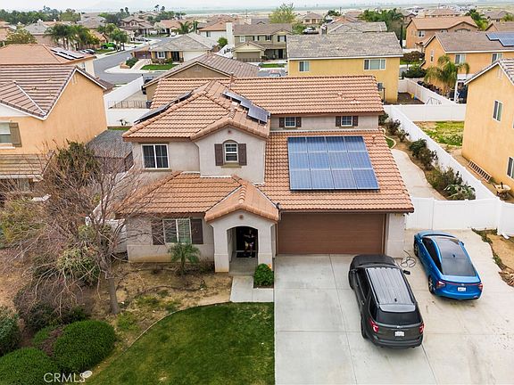 Nestled in the thriving and vibrant community of Perris, this home offers both comfort and convenience with easy access to the 215 Freeway. The expansive backyard is a true oasis, featuring meticulous landscaping, a spacious covered patio, and elegant stamped concrete. The backyard provides a perfect space for outdoor activities and entertaining, all surrounded by durable white vinyl fencing for safety & privacy. It sets the stage for unforgettable gatherings. There's also ample RV parking and a large shed for extra storage. Inside, the large kitchen is a cook’s dream, boasting stylish granite countertops and sleek stainless steel appliances. The home also features plantation shutters throughout the downstairs, an office for work or study, and a cozy loft for relaxation. Upstairs, you’ll find three spacious bedrooms, 3 full bathrooms, and a conveniently located laundry room. A well-organized garage with sturdy white cabinets offers extra storage space. This home is more than just a place to live; it’s a space where memories are made. Perfect for those seeking both practicality and comfort in a welcoming neighborhood. This home needs a littile bit of tender loving care for the right family to take advantage of giving there own home that personal special touch. New carpet and paint would bring this home to life. Dont miss out on your opertunty to