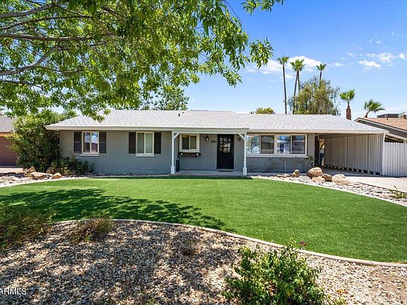 This 3 bedroom 2 bath home does not disappoint! Spacious living areas and updated kitchen with stainless steel appliances and large pantry featuring barn doors. The 3 bedrooms have great storage and the primary bathroom has also been updated with a large tile shower. Out back there is a lanai looking out to the grass yard which is perfect for entertaining! In the back you will also find a patio with pergola and BBQ just off the detached garage! The garage has parking as well as an area for a work bench. The property also has additional parking in the back. Not only is this a cute home the roof was replaced 2023, electrical panel replaced 2018, triple pane windows, R49 insulation added 2023 and so much more! A great Central Phoenix opportunity!