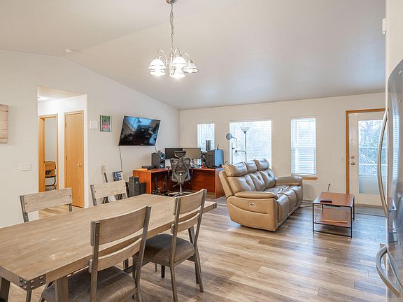 Conveniently located ranch home with metal roof. 3bd/2ba with a 2 car garage. Vaulted ceilings and open floor plan. Newer appliances, new flooring, voice on command smart-home system w/ smart-lighting. Home security included. Wooded 1.44 acres with trails for riding. Fenced in area for pets. Call to view home.