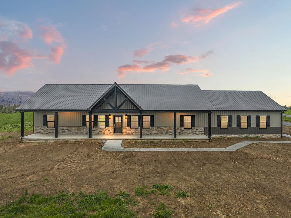 Come enjoy breathtaking sunrises from your covered front porch, and relaxing sunsets on the back patio. The open concept living area and kitchen are warm and inviting, with plenty of cabinet space, beautiful upgraded counters, and Kitchenaide appliances. There is room for everyone with four bedrooms and two full baths. The primary bath has a custom tiled shower, and a walk in closet with solid wood shelving you are sure to love. Need room to store that classic car or your boat, do you want some extra garage space to tinker on projects? Look no further! The attached, oversized garage has both single and double bays--and like the rest of the home, energy efficient spray foam insulation.