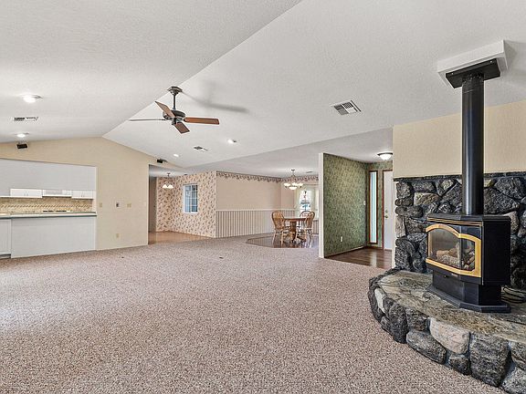 Come home to this well laid out 2857 sq. ft. 4bd 3ba home on .53 ac with a large covered patio, an inground pool, covered and paved RV parking with hookups, a detached garage for your toys, and an attached 2 car garage with additional shop space, with heat and cooling. The kitchen has a gas cooktop, double wall ovens, pull outs in the cabinets, a pass through to the living room, and a breakfast nook. The living room has a freestanding gas stove and a huge slider out to the backyard with an inground pool, lots of room for activities, and a covered patio great for entertaining or just relaxing at home. One bedroom and bath is separate from the rest and would be great for guests, in-laws, teenagers, or whoever! Close to town, but in a neighborhood with large lots for some separation!