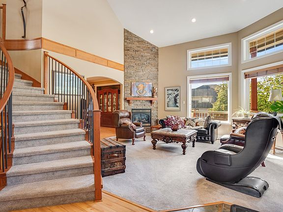Vaulted ceilingOversized dining rmNewer countersPrivate balconyMedia-wired rec rmWine rmGorgeous backyard
