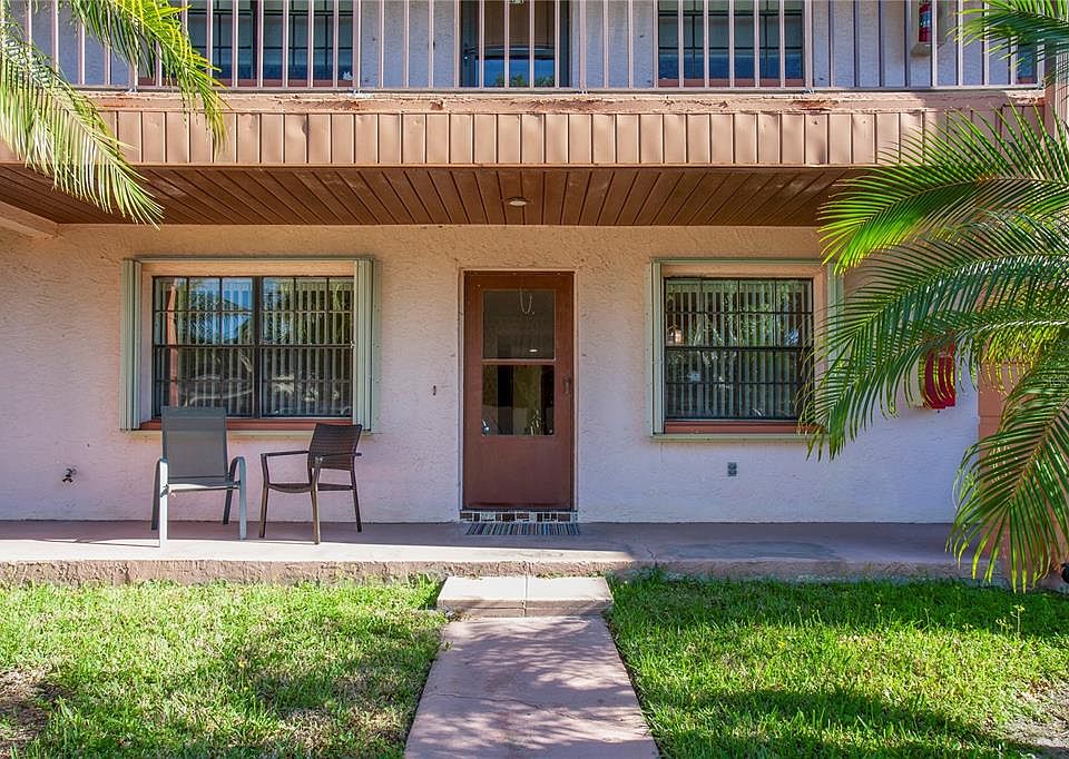 Condo with a beautiful view front and back, ground floor and NO FLOOD INSURANCE REQUIRED. Right in the heart of Largo, with schools, shopping and restaurants nearby and just minutes to the beach. Large living/dining area with a pass through to the kitchen with a pantry. Master suite has a spacious walk-in closet and the second bedroom has an oversized closet. Lots of storage and an indoor laundry with full size washer and dryer. Ceramic tile throughout. Out back is a covered patio overlooking a large green area with large oak trees and lots of shade. Pool and clubhouse are a short walk away. Storm shutters. HVAC new in 2018, water heater new in 2016.
