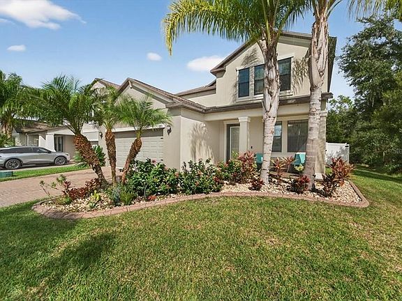 Welcome to Triple Creek— Step into this stunning, ENERGY-EFFICIENT Smart Home built in 2018, featuring a fully PAID OFF LG SOLAR PANEL System that provides immediate savings on your electric bill—currently only $15/month! This incredible benefit, combined with the home’s modern design, makes it the perfect place to live comfortably and sustainably. From the moment you arrive, the professionally landscaped front yard welcomes you with impressive curb appeal. Inside, you'll find a spacious, open-concept layout that includes 4 BEDROOMS, 3 FULL BATHrooms, PLUS a private den/office, PLUS loft/media room, and a convenient 2-car garage. The den/office is uniquely enclosed with custom Frosted Glass French doors, creating a quiet, private space ideal for working from home. With new LED lighting, brand-NEW ceiling fans, a NEW hot water heater, and ceramic tile flooring throughout (plus sleek wood-vinyl plank flooring on the stairs), this home feels modern and low-maintenance. The absence of carpet adds to the easy upkeep and clean aesthetic. Start your mornings in the fully screened lanai, where you can sip coffee and enjoy the serene sounds of nature. The backyard is fully fenced—perfect for pets to roam freely. The open-concept kitchen is a chef’s dream with a massive center ISLAND and cozy breakfast nook overlooking the family room, creating an inviting space for both everyday living and entertaining. For added convenience, there’s a FIRST-floor bedroom and FULL bath, ideal for guests or multi-generational living. Upstairs, the remaining bedrooms are spacious and flexible to accommodate your family’s needs. Enjoy the tranquility of the screened patio, which offers peaceful views of a nature preserve—no rear neighbors, just beautiful greenery for ultimate privacy. Triple Creek isn’t just a neighborhood; it’s a community built for an active and relaxing lifestyle. Resort-style amenities include swimming pools, a fitness center, playgrounds, and scenic walking trails. Enjoy the peaceful ambiance of the ponds and lush Florida landscaping while being conveniently close to I-75, Downtown Tampa, Tampa International Airport, shopping, and dining options. This home isn’t just a place to live—it's a lifestyle. Don’t miss your chance to own this perfect blend of comfort, sustainability, and community.Call today, and be home before the Holidays!