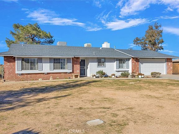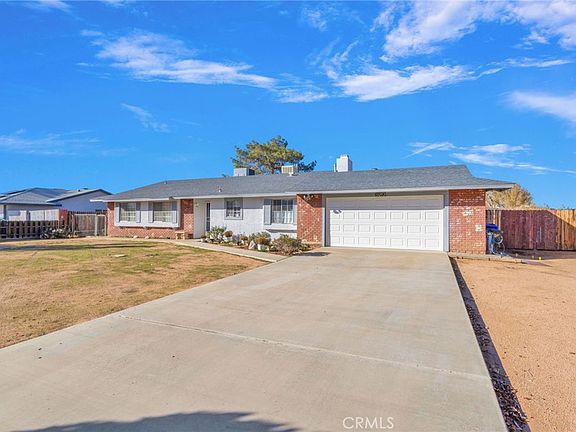 Charming 3-bedroom, 2-bathroom featuring Bonus room that can serve as a 4th Bedroom. This home perfectly balances comfort and functionality of thoughtfully designed living space. Step inside to discover spacious bedrooms and an entertaining kitchen featuring a generous dining area and eat-bar that flows seamlessly into the family room. The heart of the home showcases a genuine wood-burning fireplace and elegant French doors that invite you to the outdoor oasis beyond. The versatile living room doubles as a bonus space with potential for a fourth bedroom, while the primary bedroom impresses with dual mirrored closet doors for abundant storage. Climate control comes courtesy of both central air conditioning and an evaporative cooler, ensuring year-round comfort. The real showstopper lies outdoors, where a breathtaking backyard awaits with additional concrete surfaces, a covered patio perfect for entertaining, two practical storage sheds, and mature established trees that provide natural beauty and shade. This outdoor sanctuary transforms ordinary days into special moments. Conveniently positioned near the well-regarded Vanguard parent choice charter school, this home offers educational excellence within reach. The neighborhood provides easy access to Don Ferrarese Park for recreational activities, High Desert Premier Academy for secondary education options, and essential shopping conveniences nearby. This property represents an exceptional opportunity for families seeking a move-in ready home that combines indoor comfort with spectacular outdoor living potential. The thoughtful layout, quality features, and prime location create the perfect foundation for making lasting memories. Schedule your showing today to experience this remarkable home firsthand.