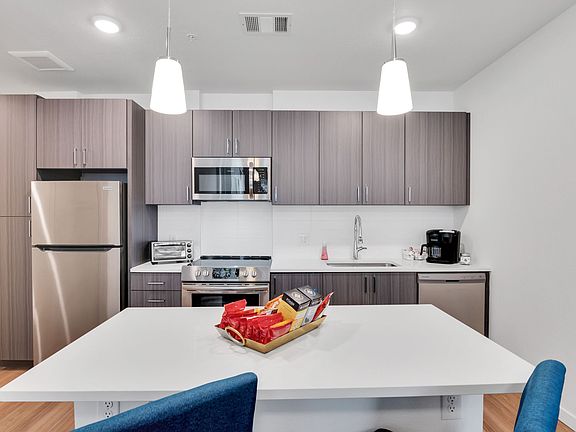 This fully furnished monthly rental includes all utilities, in-home washer and dryer, air conditioning, dishwasher, high-speed internet, and stainless steel appliances. You'll also have access to community amenities like a two-story fitness center, bike storage, resident lounge, rooftop lounge with fire pits and city views, coworking stations, and private conference rooms. While we don't guarantee a specific apartment number or floor, you can expect the same modern style and quality in your space.