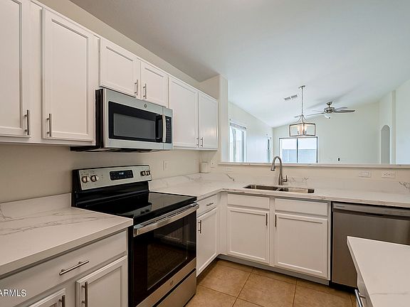 Welcome to your beautiful home in the Highly desirable planned community of Magma Ranch. The home features 3 bedrooms, 2 baths (guest bath being a Jack n Jill style) and a den. Key features include an updated kitchen with beautiful quartz countertops, matching stainless steel appliances with built-in microwave, breakfast bar, new kitchen sink, white cabinets, and great countertop and cabinet space. The primary suite features a full bath with dual sinks, separate tub and shower, private toilet room, large garden style tub, and spacious walk-in closet. Key additions include a new AC unit, new carpeting in the home, and fresh interior paint. Low maintenance landscaping in front and rear yards. This one is a must see.